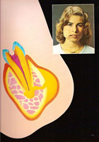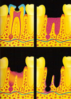 This illustration shows how the permanent teeth are developing in the jawbone and the complicated process of the eruption of the permanent teeth by pushing out and resorbing the primary teeth.