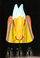 The connection between the nerve on the inside of the tooth and the blood vessels of the surrounding bone and with the circulation in general is easily recognized.