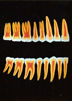 The teeth are shown in their anatomical relationships. The number and size of the roots of each tooth are seen.